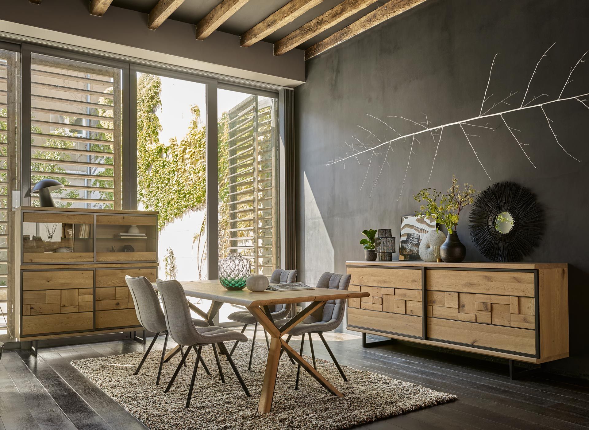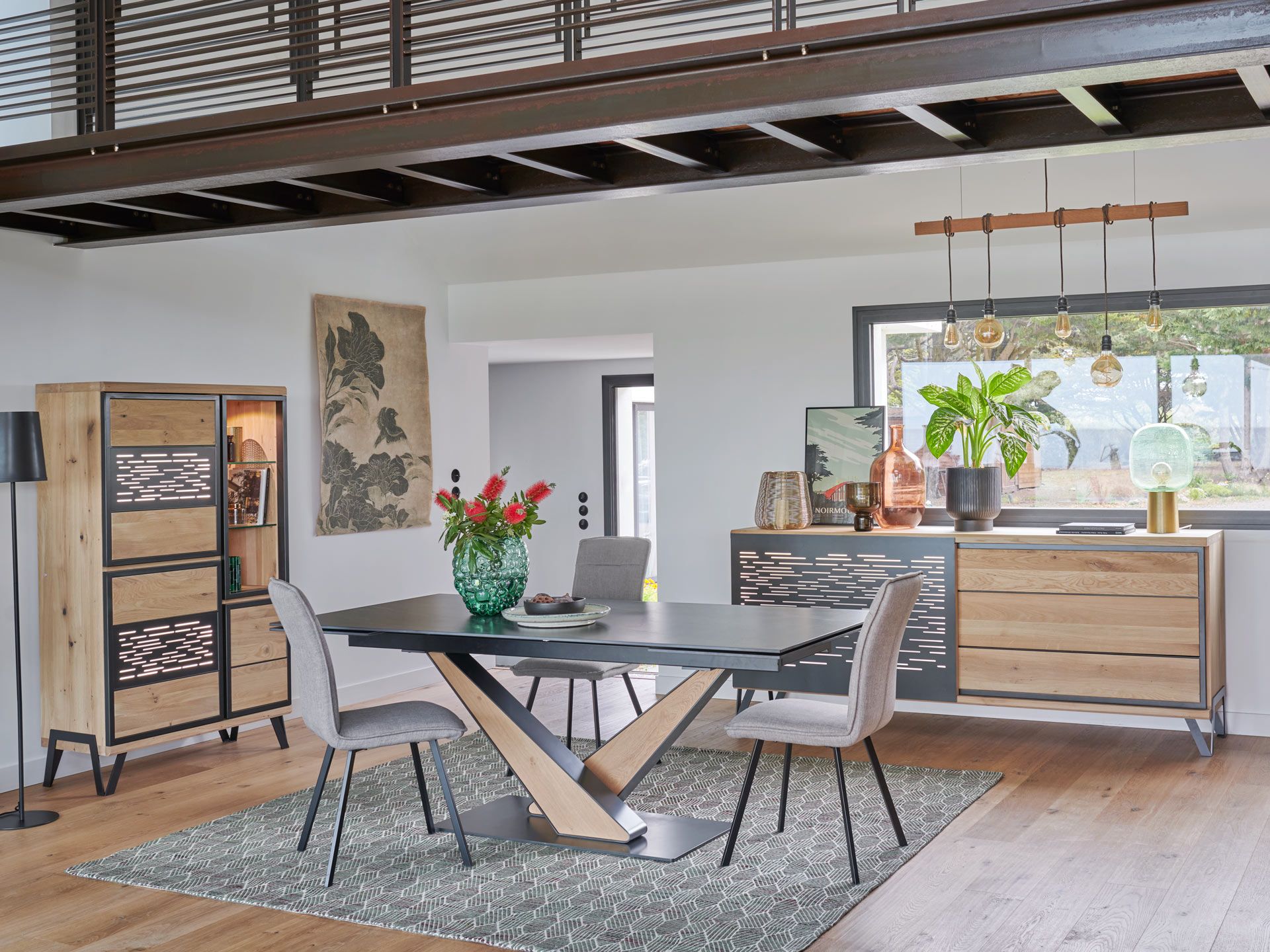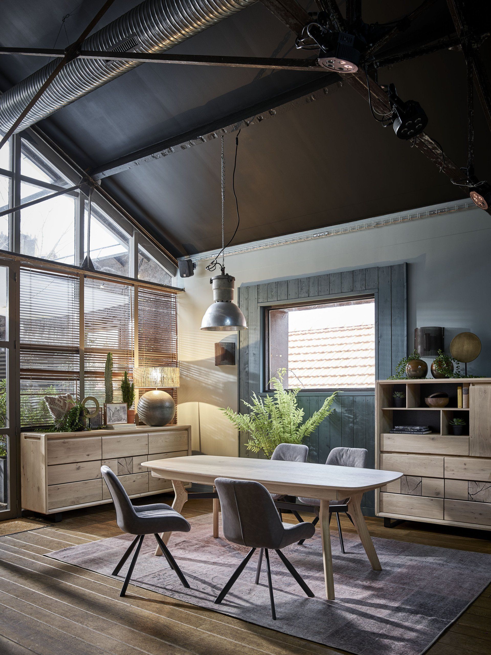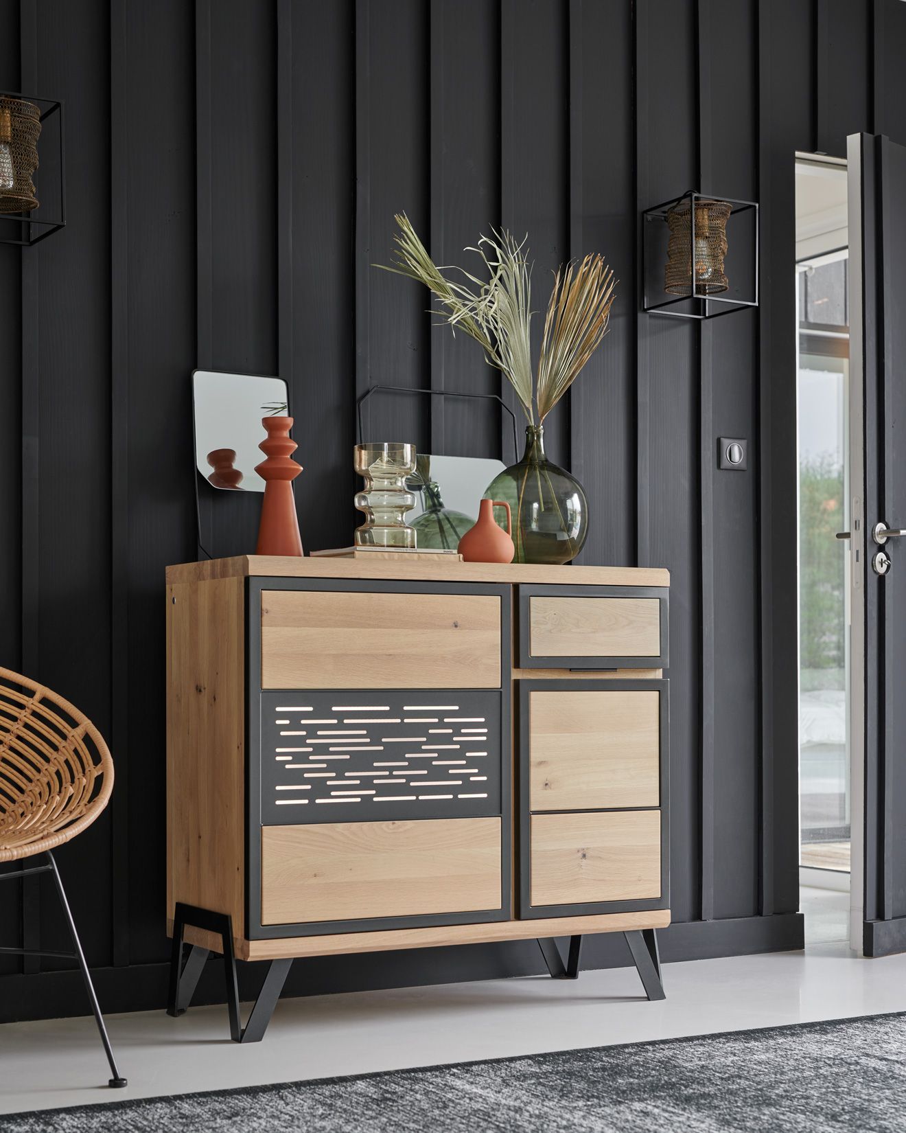 Structure métallique + bois divers massif + panneaux de particules
