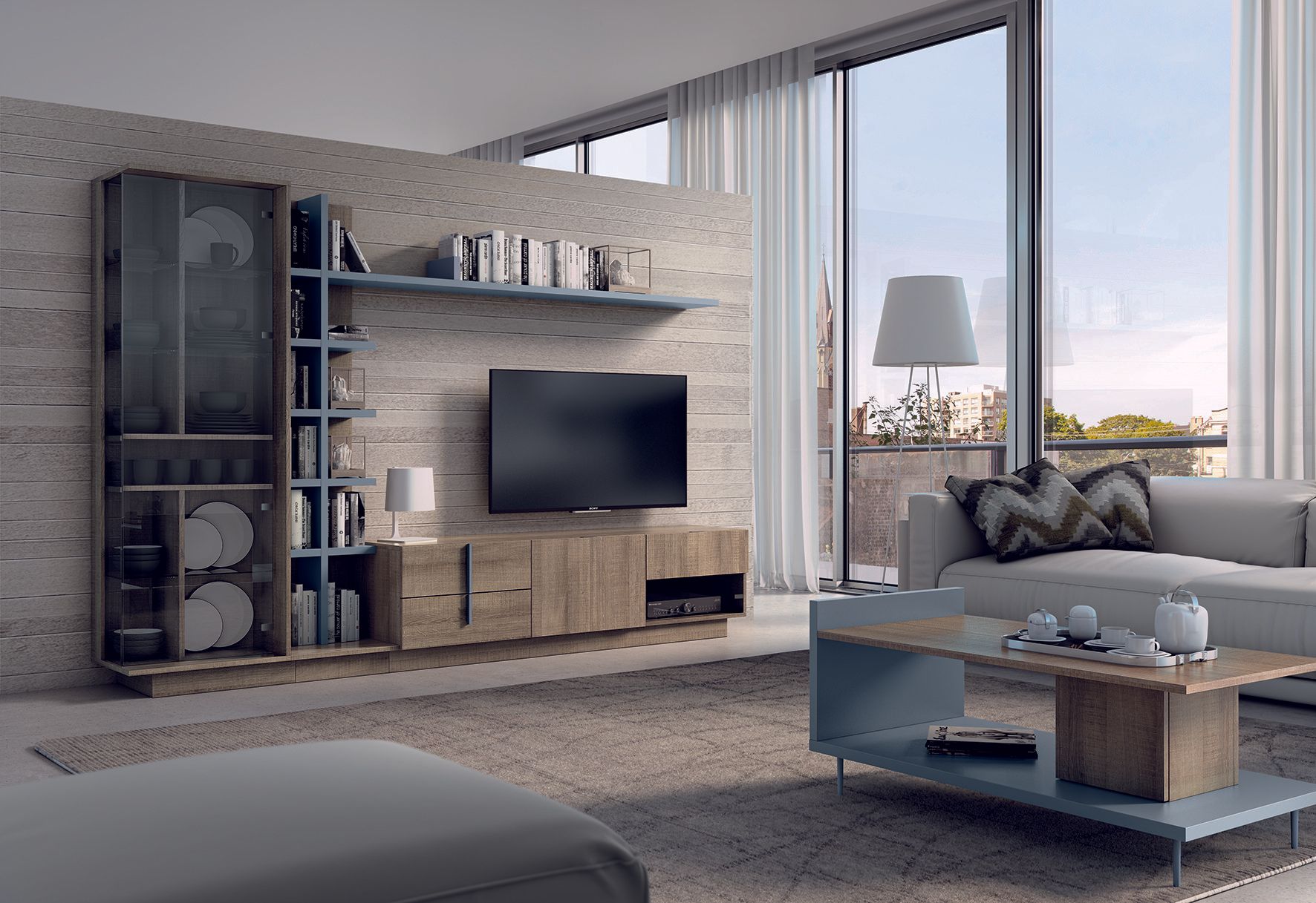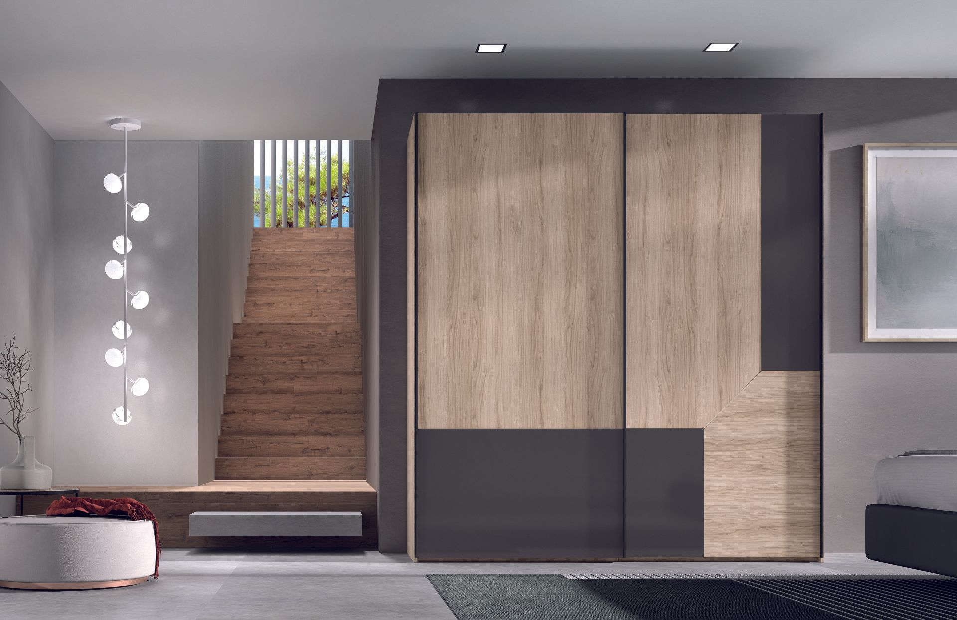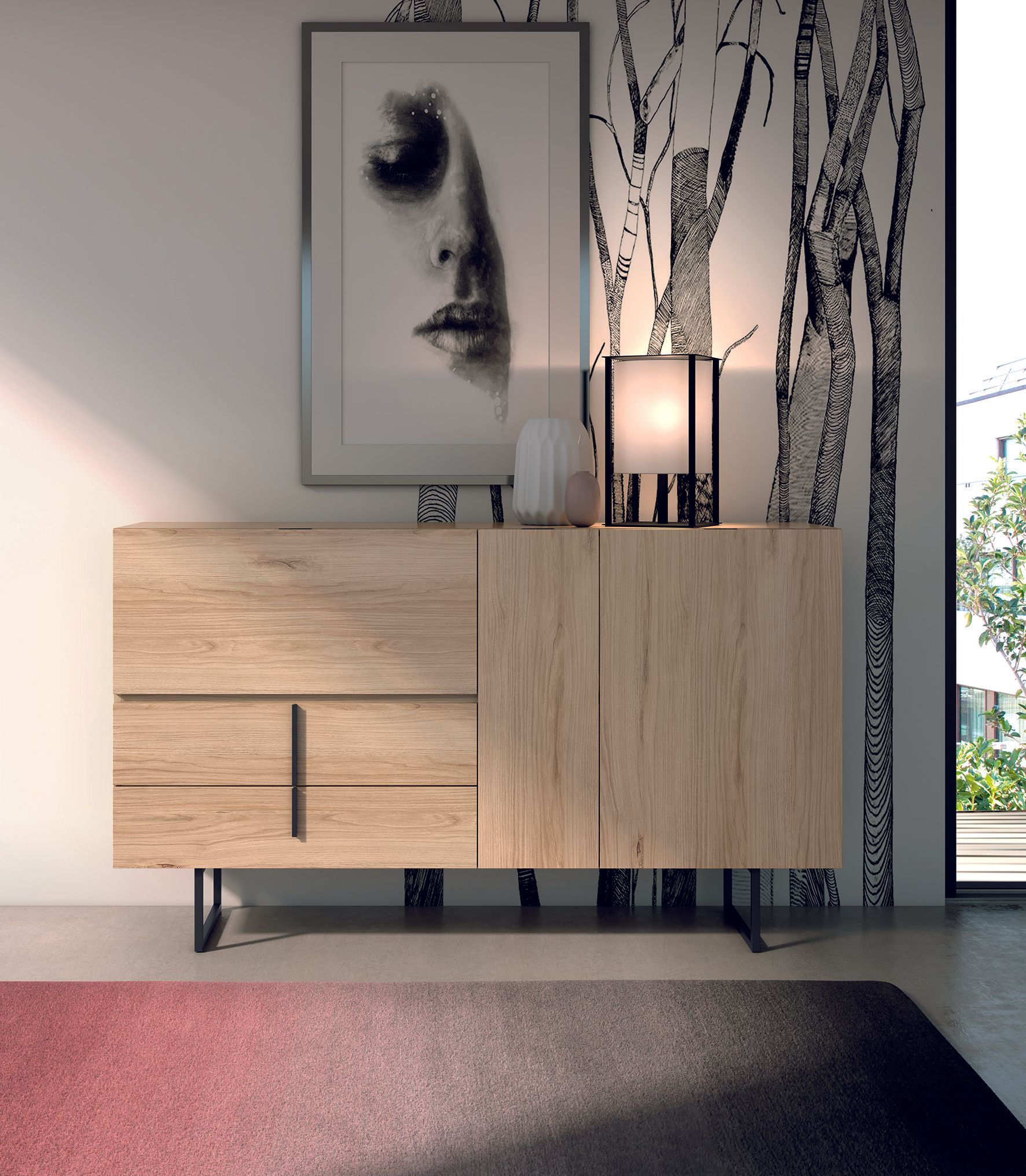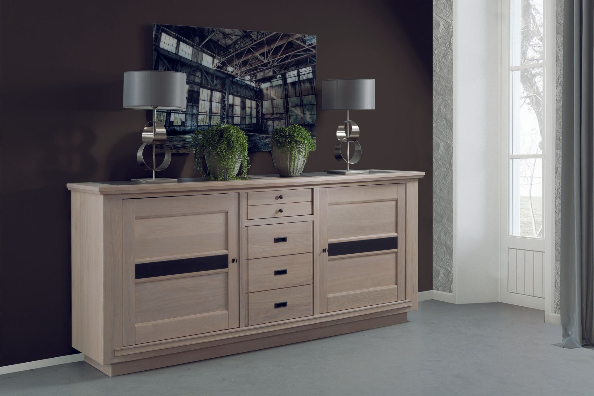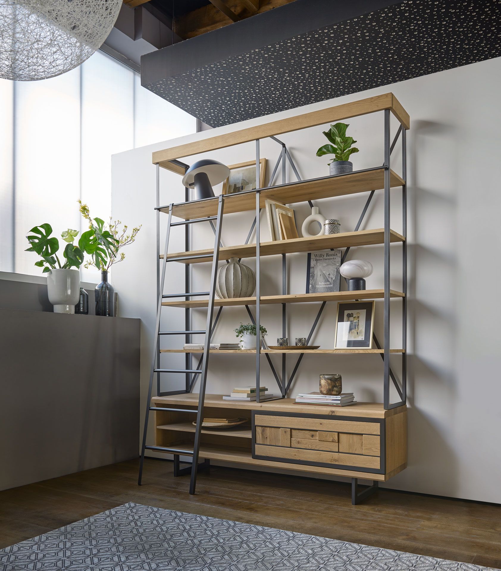 Structure métallique + bois divers massif + panneaux de particules